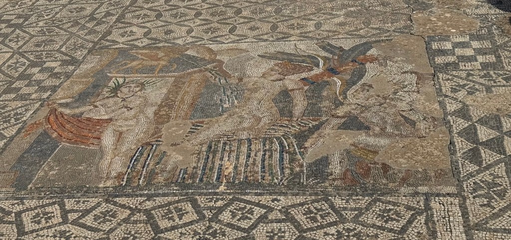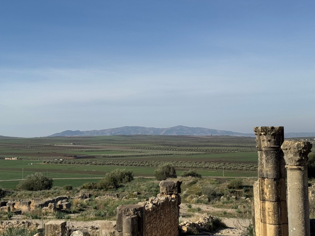 While still in Fez, we took a day trip north to see the Roman ruins at Volubis. A fertile land where wheat, barley and olives have long been plentiful, it was the capital of a major regional Amazigh capital for centuries, then was the southwestern extent of the Roman realm for a few centuries until Rome began to wither. Power eventually migrated to Fez, while time and seismic activity contributed to preserving Volubis as an archaeological site.