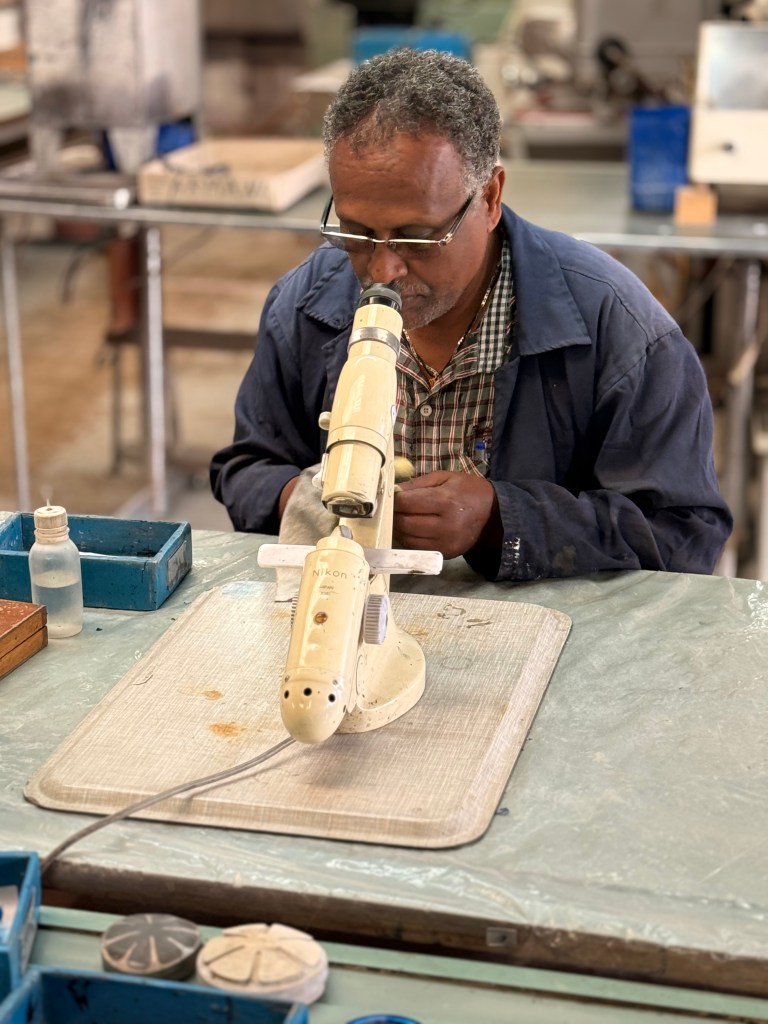 While in Addis we visited Signum Vitae, an eyeglass fabrication cooperative created by a German NGO, now locally owned, that employs disabled workers to manufacture eyeglass frames and lenses for those priced out on the open market. Such a win-win situation: those disadvantaged for employment gain a solid job making products available to those previously unable to afford vision correction. Nice!