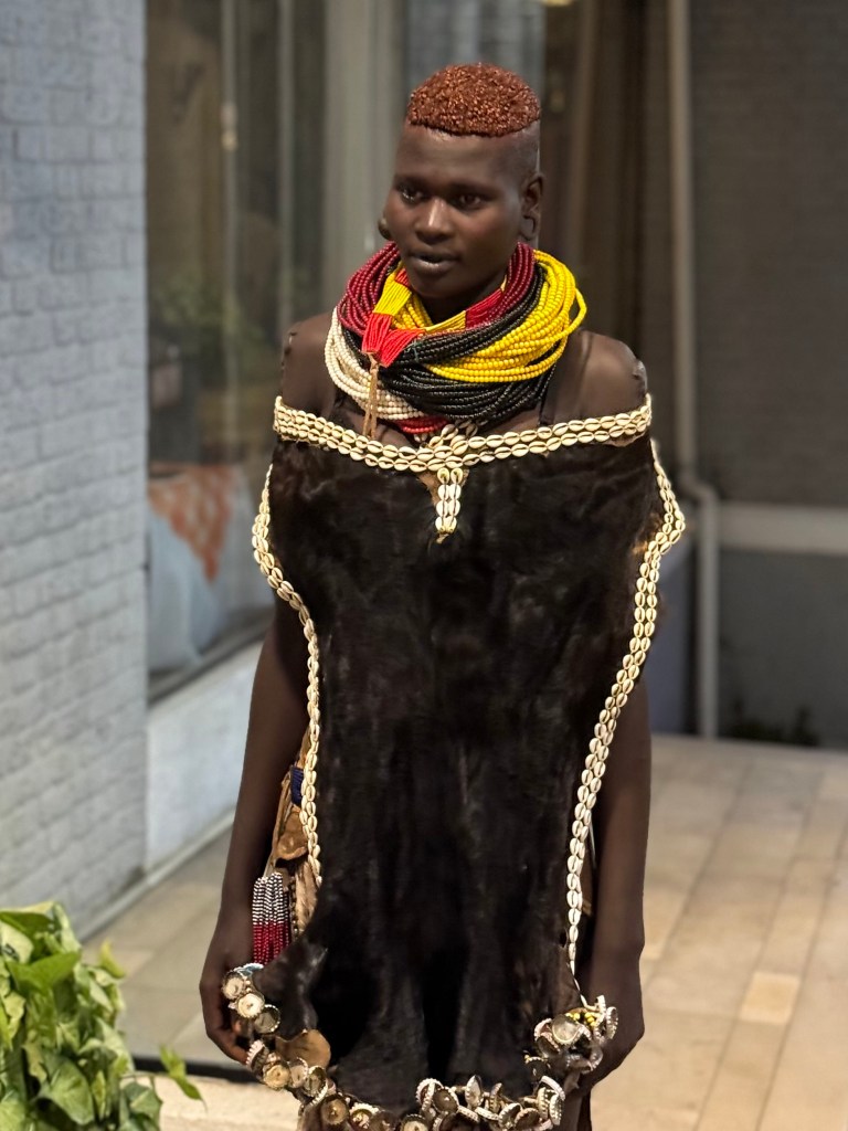 At dinner that night in one of the oldest restaurants in Addis, we dined on Ethiopian food and had a chance to chat with a couple of dancers that were performing elsewhere in the venue. They are from the Karo tribe in the south of the country, where body painting and body scarification are signs of beauty. Not sure that I get scarification (cutting the skin and rubbing with ash produces a noticeable, permanent welt on the skin, as on the shoulders of the female dancer), but I do find that the more curious I am, the less judgmental I become…