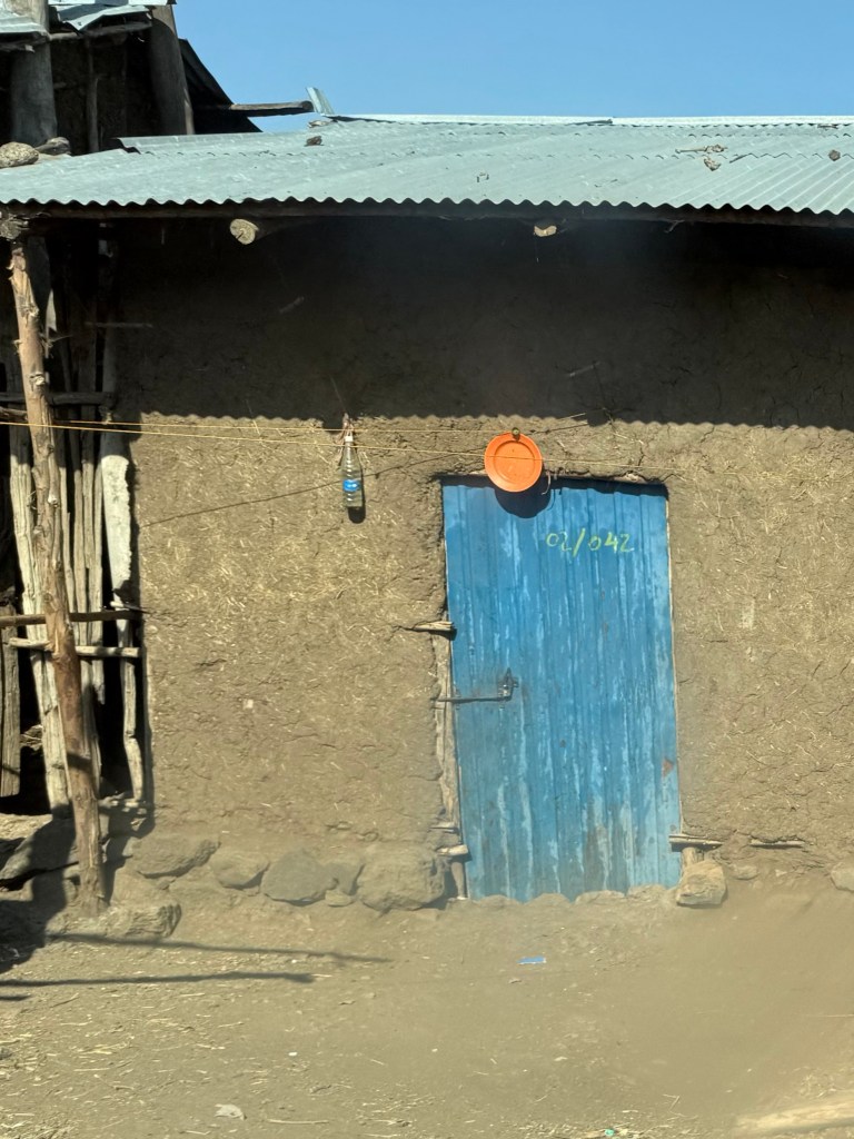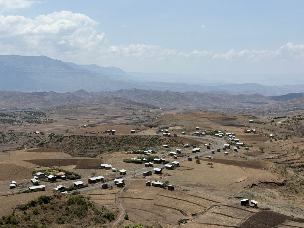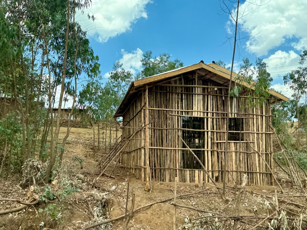 Once out of the capital city, Ethiopia becomes a land strikingly familiar in its climate and topography, recalling the beauty of the mountainous American southwest. Looking closely, though, details emerge that shape the uniqueness of this place: family farms leverage any arable land available, small rectangular homes and barns — each made of eucalyptus boles, adobe mud and corrugated metal — dot the land, and most everyone walks (the average rural person walks 20km, that’s 12 miles, per day.) The pace of life seems slower, yet, in a way, relentless too.