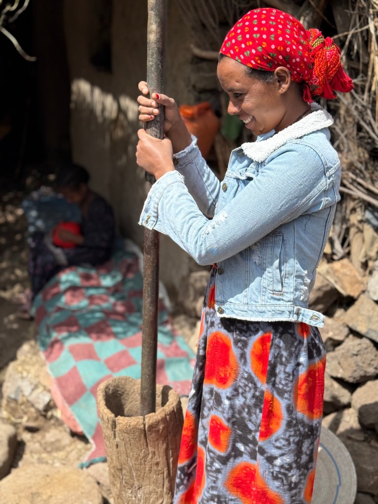 While in Lalibela, we spent the day with a couple of farming families in a nearby village learning about the pace of life, complexities and joys in their families and communities. These tend to be the parts of these trips that I find most interesting, especially as we avail ourselves at some of the daily tasks that dominate their lives. For me, placing myself in another person’s shoes is a great way to kindle empathy, learn a bit more humility and be reminded of all the blessings I enjoy in my life.