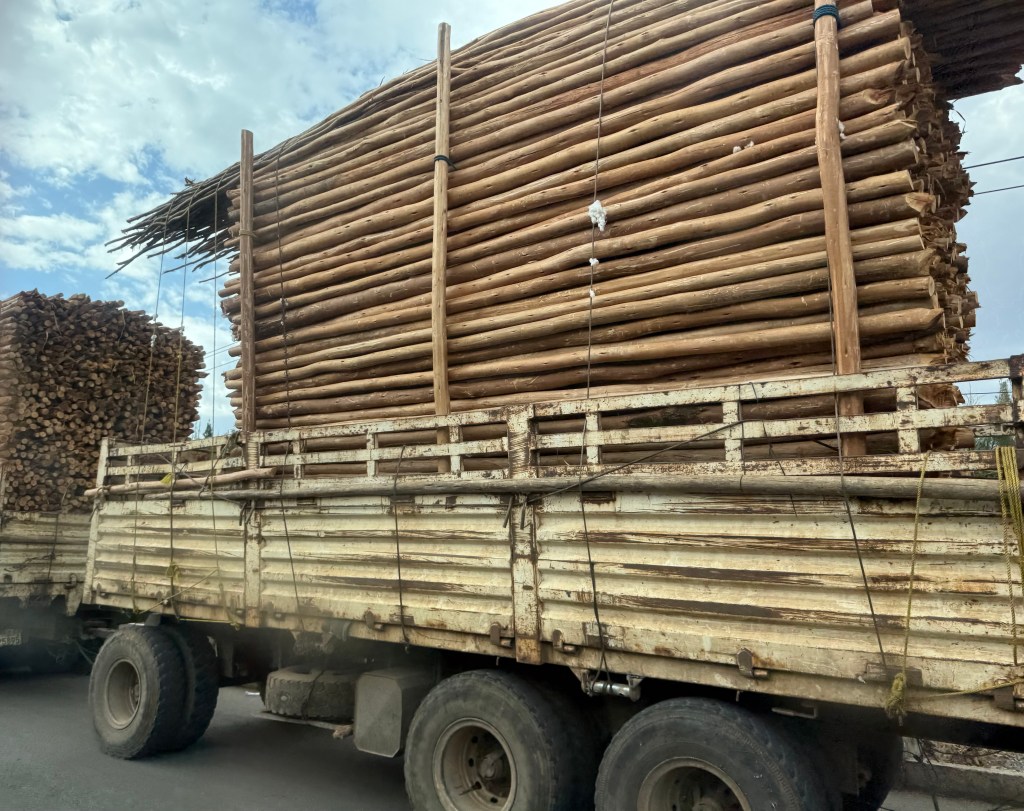 A second defining feature of the landscape would be eucalyptus trees; they too are (almost) everywhere. I had been joking with the group that if the word Ethiopia doesn’t mean “rock”, it must translate to “eucalyptus”… Introduced, on purpose, over a century ago to address shortages of firewood and building materials in Addis, they now dominate forest ecosystems and local economies alike. I get the appeal: it is fast growing (harvestable every few years), grows fairly straight (great for building) and burns well (it’s also the primary source of firewood for cooking and heating). Yet, this widely relied-upon resource is also a water-guzzling, invasive species in a time when climate change has already affected water supplies here, which are primarily dependent on rainfall and groundwater. And until an equally inexpensive and broadly accessible alternative energy source is available, people will burn this wood, independent of longer term consequences.