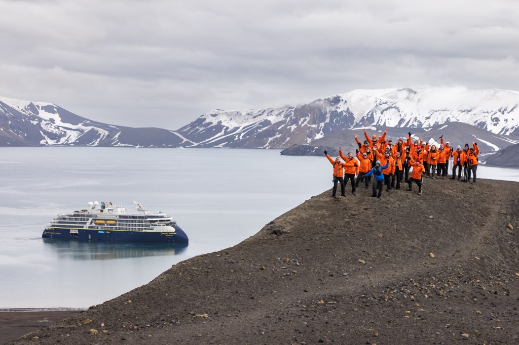 As we made good speed on the way south from Ushuaia, arriving at the Antarctic Peninsula ahead of schedule, we had time for an excursion on the afternoon of our second sea day — hiking on Deception Island, a caldera that last erupted 50 years ago. There is still steam rising from the beautiful black sand beach where the zodiacs dropped us for a hike to a promontory overlooking the island — so cool to see earth’s extremes of fire and ice on such vivid display. Fun fact: Deception Island is one of only two calderas on the planet into which one can sail a ship.
