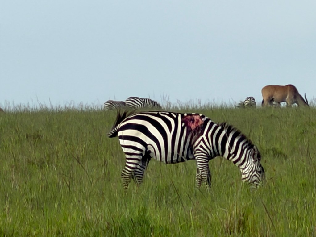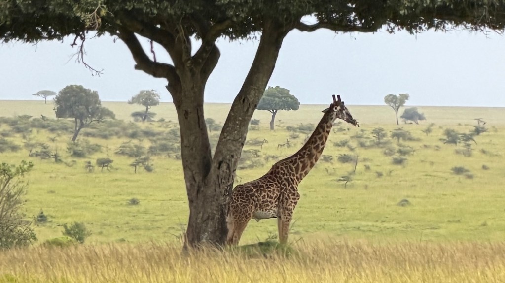 A couple-hour drive got us to Migori airstrip, where we caught a small plane to the Masai Mara. While it is rainy season now, we had mostly clear weather and, with fewer visitors, more of an untrammeled safari experience. I harbored a secret wish to see a hunt in action, which if fairly rare to see during game drives. Fortunately, on the first drive, we spotted a jackal couple giving chase to a young Thomson’s gazelle. We tracked it for about half a minute — with me trying to shoot video in a moving safari vehicle 🤣. But just as soon as the jackals had the gazelle calf, a hyena swooped in and stole it away. In minutes the hyena devoured it. An amazing thing to see. Another sight was seeing an adult zebra missing a large chunk of its back. I have seen zebra missing tails, courtesy of a lion, but this? Seriously? Another amazing sight.