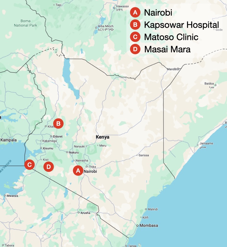 The second half of our trip took us to Kenya to visit Jane’s niece Mary, who is a traveling nurse in a rural hospital in Kapsowar (www.kapsowarhospital.org) and to visit an organization in Matoso with whom Jane worked in the 90s (www.lalmba.org). We both also wanted some safari time, so her friends in Kenya were able to connect us with a camp in the Masai Mara. Because of the war, we changed our flights from Manila to connect thru Ethiopia – a fond reminder of my time there last year. I’m grateful that we were able to secure this last-ish minute change as pickings are slim: nine-tenths of the connections between SE Asia and Kenya go through a Middle East airport.